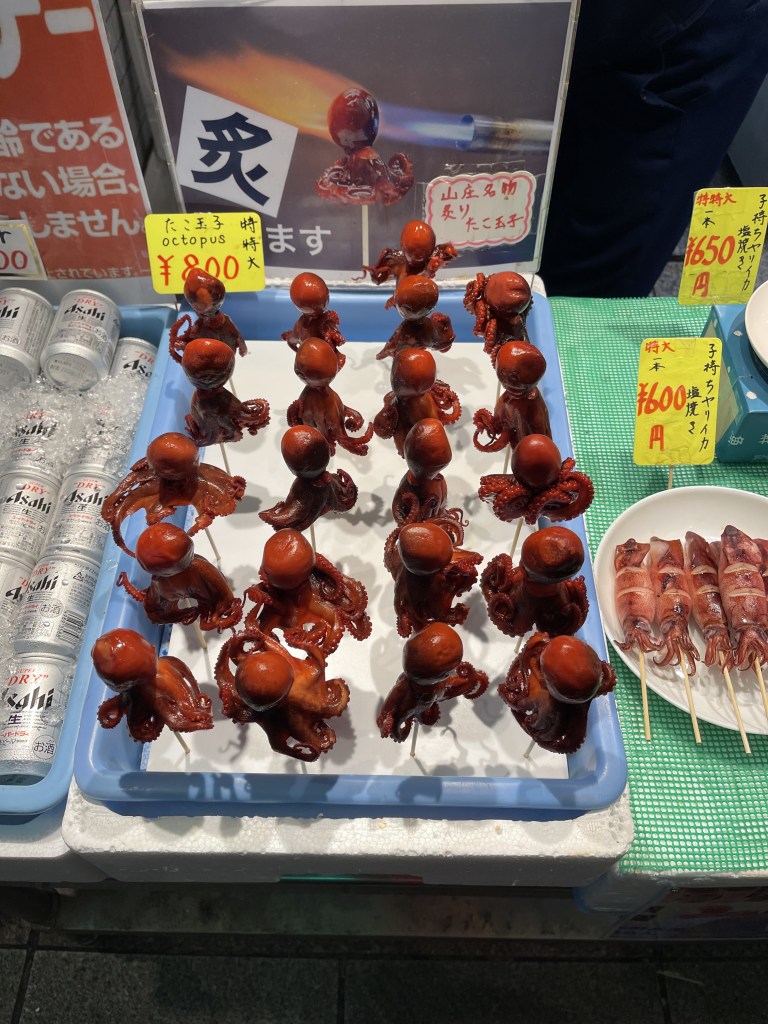 Små blekksprut på spidd var tydeligvis en delikatesse.