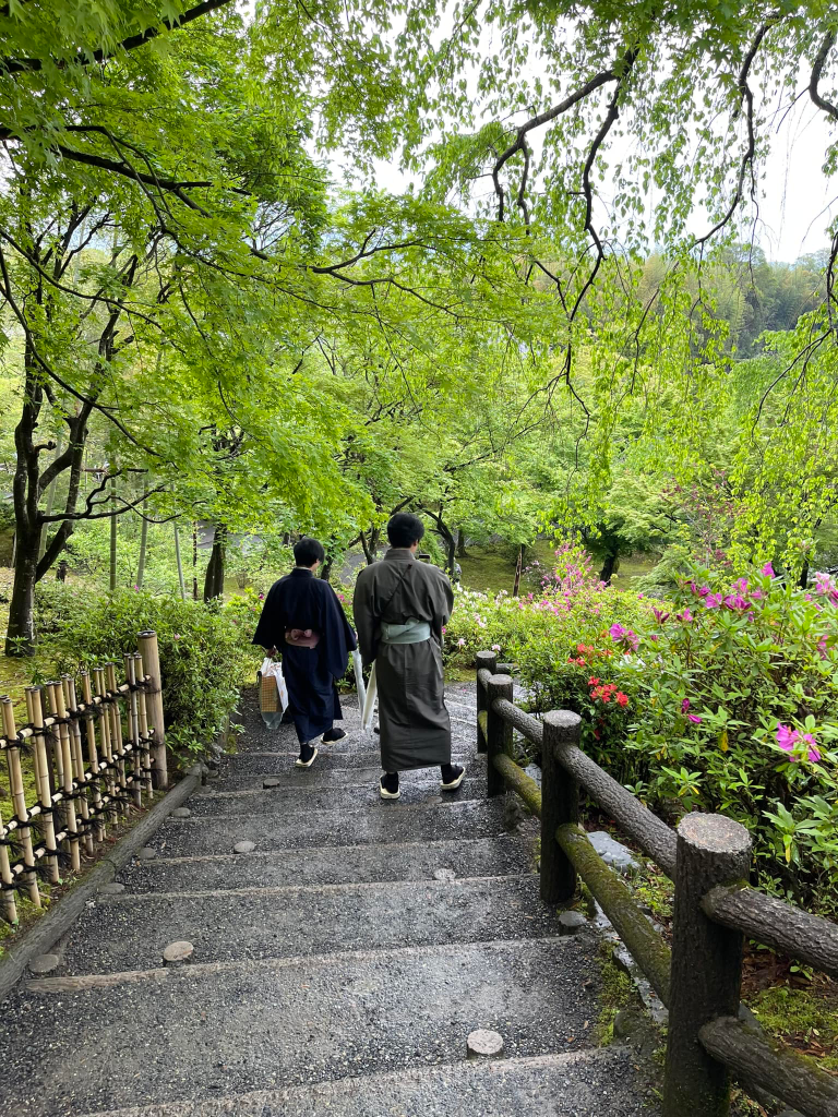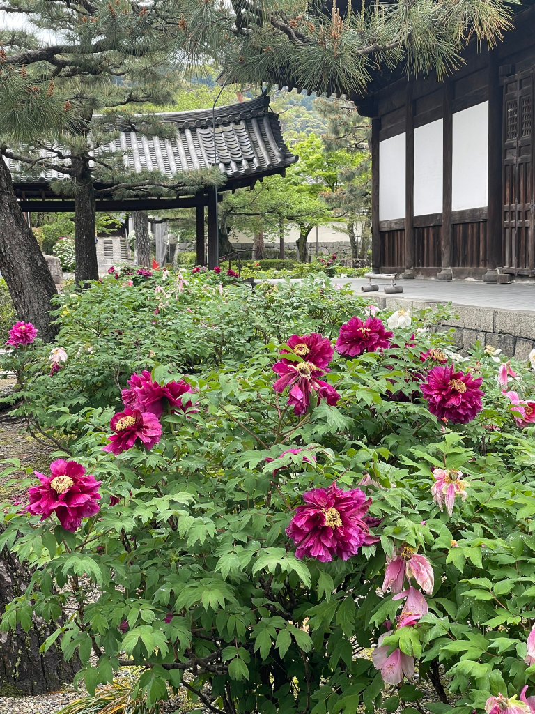 The next day it was time to get to know Kyoto and some of the city’s sights. This temple was further down the street. Kyoto is full of small and large temple oases in the middle of the city. Always surrounded by lovely gardens, sometimes large, sometimes tiny squares, but always neat and well-kept. We arrived late for the cherry blossoms, but the abundance of azaleas, peonies and budding roses was impressive. Elsewhere, the gardens consisted only of a small square of gravel, neatly raked in a pattern with strong symbolism.