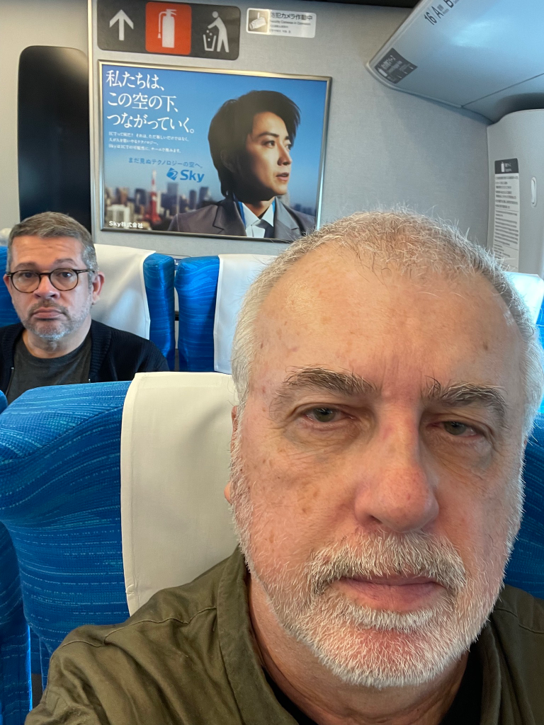 Det tok sin tid å komme gjennom passkontroll og toll. Mye papir måtte fylles ut. Japanere er på enkelte områder svært byråkratiske og lite digitaliserte. Men etterpå gikk det greit å kjøpe metrobillett til Shinagawa, deretter hurtigtoget Shinkansen til Kyoto. Alle er hjelpsomme og blide, men vi har allerede funnet ut at ingen snakker engelsk. Shinkansen er mindre luksuriøs enn man skulle tro, men den går fort. Siden vi ikke fikk plasser ved siden av hverandre benyttet jeg tiden til å beundre tastaturet til PC-en hos min sidemann, samt smugtitte på den unge damen til venstre – hun var stylet som en manga-figur og hadde kosedyr festet til den rosa trillekofferten. Japan, bring it on!